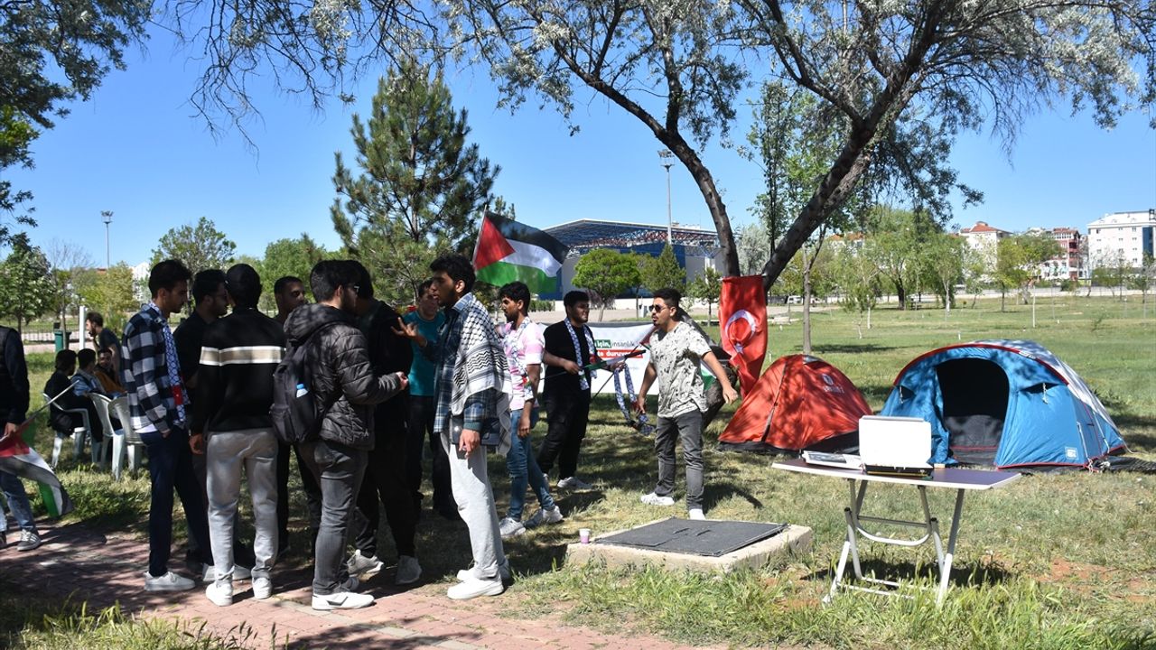 Çadır nöbetinin yapıldığı AKÜ Barış Manço Şölen Alanı yanında öğrenciler adına bir konuşma yapan Genç İHH Başkanı ve öğrenci Mehmet Eren Özbay, 17 ekimden bu yana Filistin'de bir katliamın olduğunu söyledi.