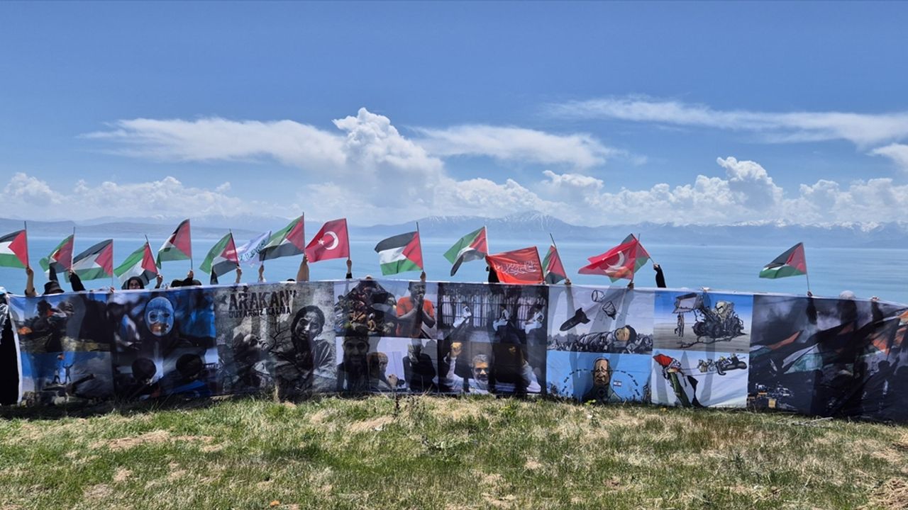 VAN (AA) - Van Yüzüncü Yıl Üniversitesindeki (YYÜ) akademisyenler ve öğrenciler, İsrail'in Gazze'ye yönelik saldırılarında hayatını kaybeden Filistinlilerin anısına Van Gölü'ndeki Çarpanak Adası'nın karşısındaki 2 bin 200 rakımlı tepeye tırmandı.