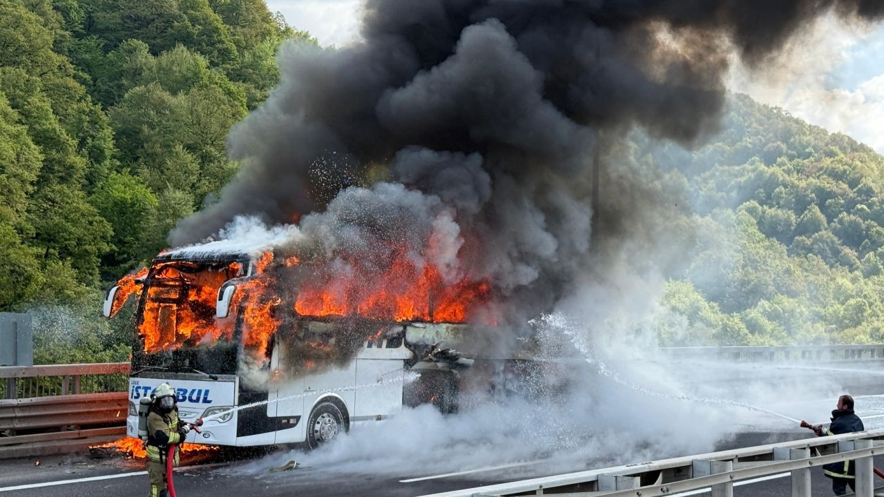 Durumu fark eden sürücü, otobüsü sağ şeride çekerek yolcuları tahliye etti.