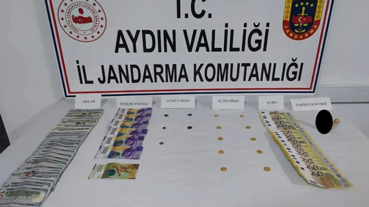 Aydın'ın Germencik ilçesinde düzenlenen operasyonda 66 parça tarihi eser ele geçirildi, 2 zanlı gözaltına alındı.