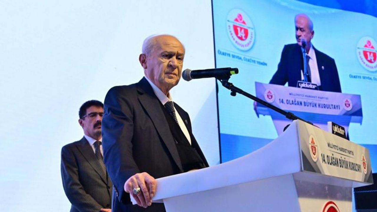 Milliyetçi Hareket Partisi'nin 14. Olağan Büyük Kurultayı'nda tekrar genel başkan seçilen Devlet Bahçeli, Cumhurbaşkanı Recep Tayyip Erdoğan'a önemli bir mesaj iletti. Bahçeli, Erdoğan'a seslenerek, "Bu benim final seçimim" diyen Erdoğan'ı hatırlatarak, "Ayrılamazsın, Türk milletini yalnız bırakamazsın. Cumhur İttifakı olarak yanındayız" ifadelerini kullandı.