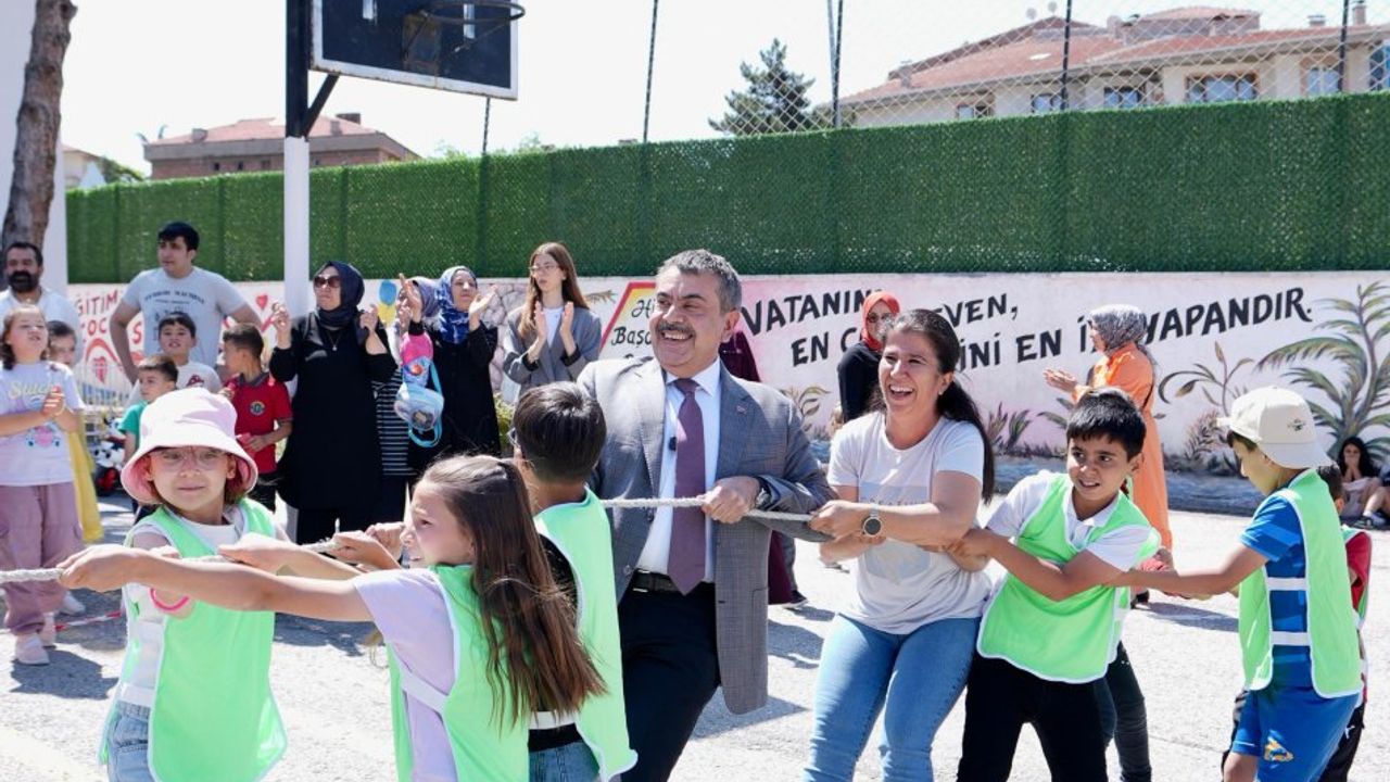 Burada karne öncesi son haftada gerçekleştirilen "dönem sonu faaliyet haftası" kapsamında öğrencilerin düzenlediği etkinlikleri izleyen Tekin, halat çekme oyununa katıldı, çuval oyununu izledi.