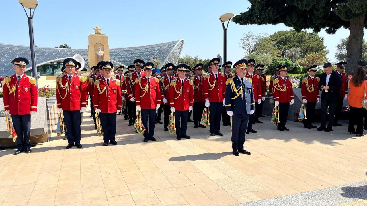 Saygı duruşu ile başlayan törende Büyükelçi Akgün, Şehitlik Anıtı'na çelenk sundu. Azerbaycan Savunma Bakanlığı Askeri Bandosu, Azerbaycan Milli Marşı ve İstiklal Marşı'nı seslendirdi.