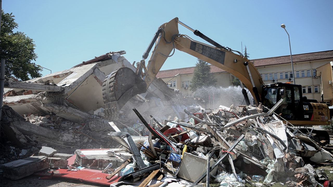 Balıkesir'in Sındırgı ilçesinde meydana gelen 6,1 büyüklüğündeki depremde yıkılan 3 katlı binada enkaz kaldırma çalışmaları sürüyor.