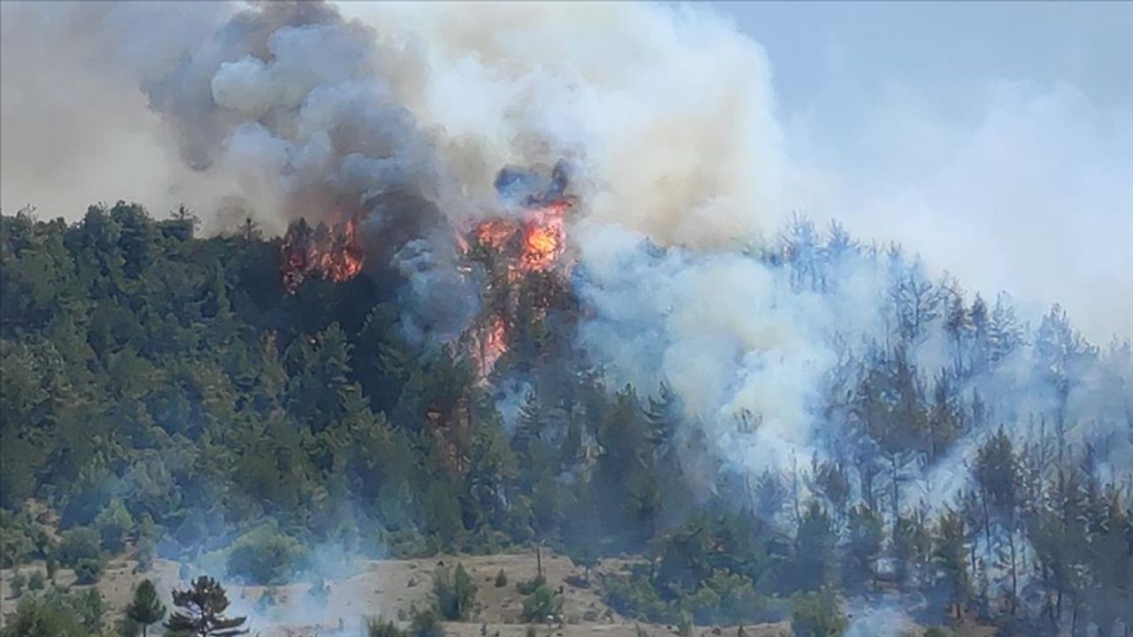 Bilecik'te tarım arazisinde başlayıp ormanlık alana sıçrayan yangına havadan ve karadan müdahale ediliyor.