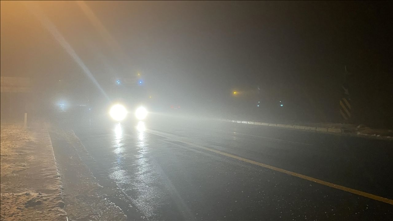 Kar ve sisin etkili olduğu bölgede görüş mesafesi yer yer 15 metreye kadar düştü.