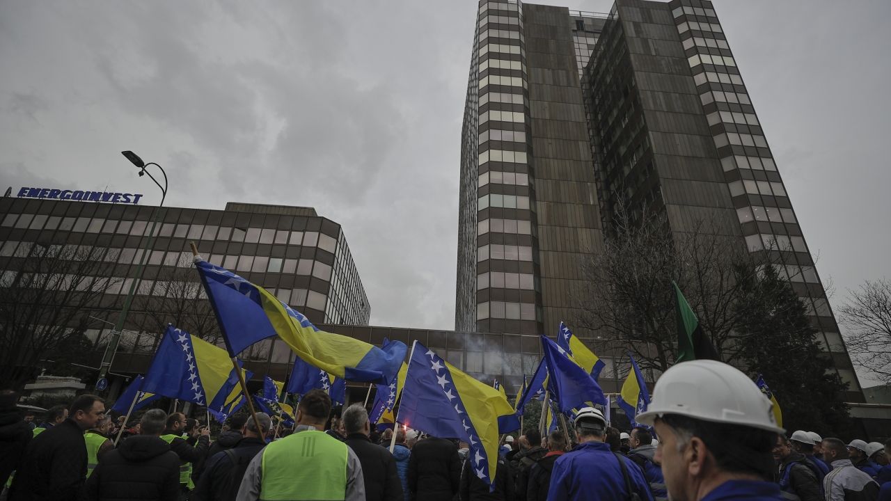 Ülkenin farklı kentlerinden yüzlerce maden işçisi, Zenica'daki kömür madeninde çalışan işçilerin ocak ve şubat maaşları ile katkı paylarını alamamaları nedeniyle Saraybosna'daki Bosna Hersek Federasyonu Hükümet binası önünde toplandı.