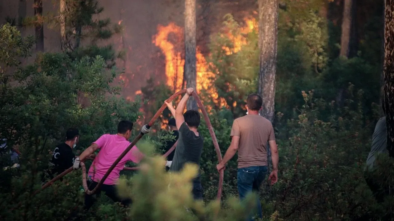 Ekiplerce yürütülen yoğun müdahaleyle yangının ilerleyişi durdurulmaya çalışılıyor. Bölge halkı da traktörlerinin arkalarına bağladıkları su dolu tankerlerle ekiplere destek veriyor.
