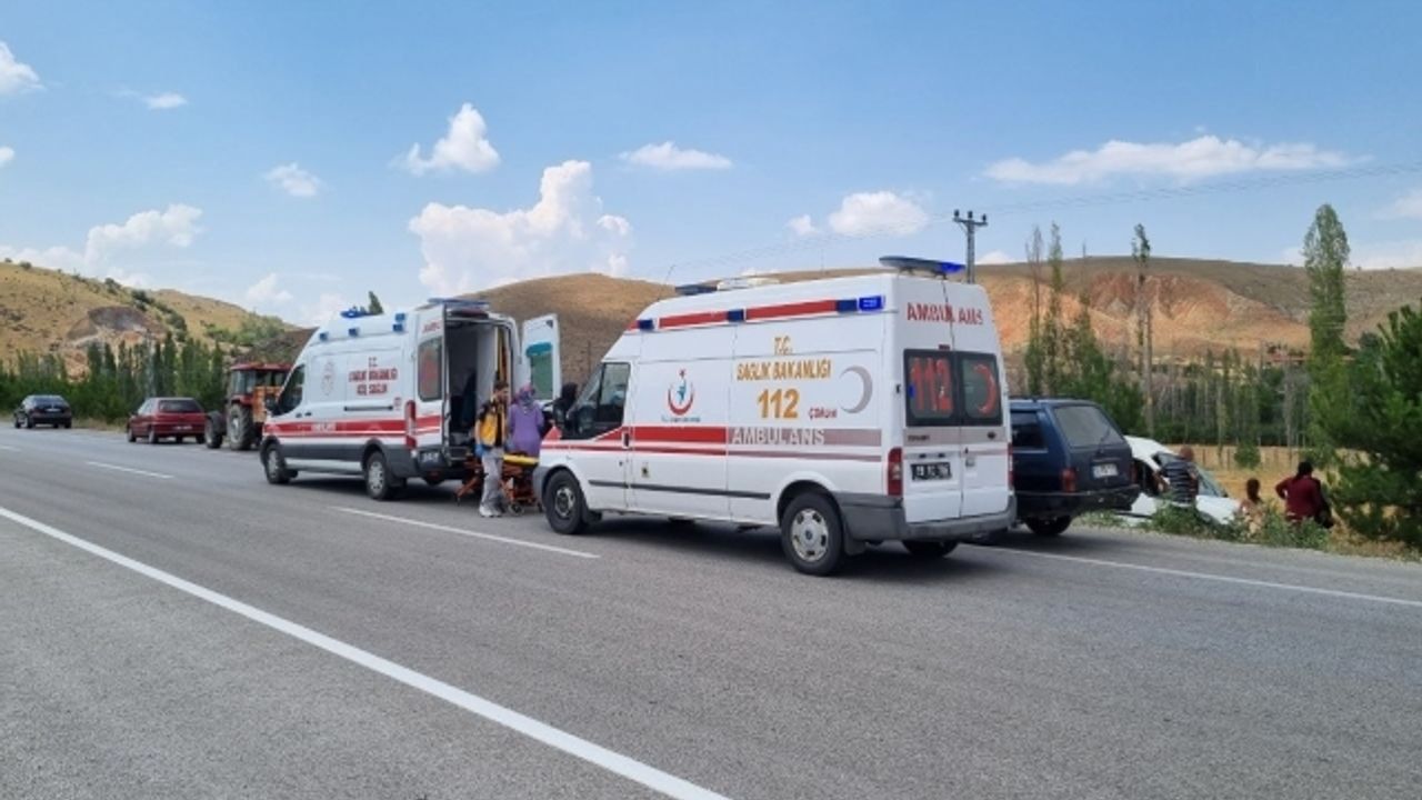 Çorum'un Alaca ilçesinde iki otomobilin çarpışması sonucu 7 kişi yaralandı.