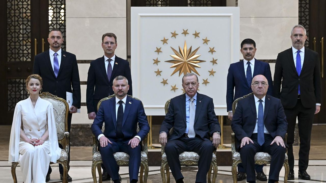 Büyükelçilik mensupları ve aile fertlerini takdim eden büyükelçiler, Erdoğan ile hatıra fotoğrafı çektirdi.
