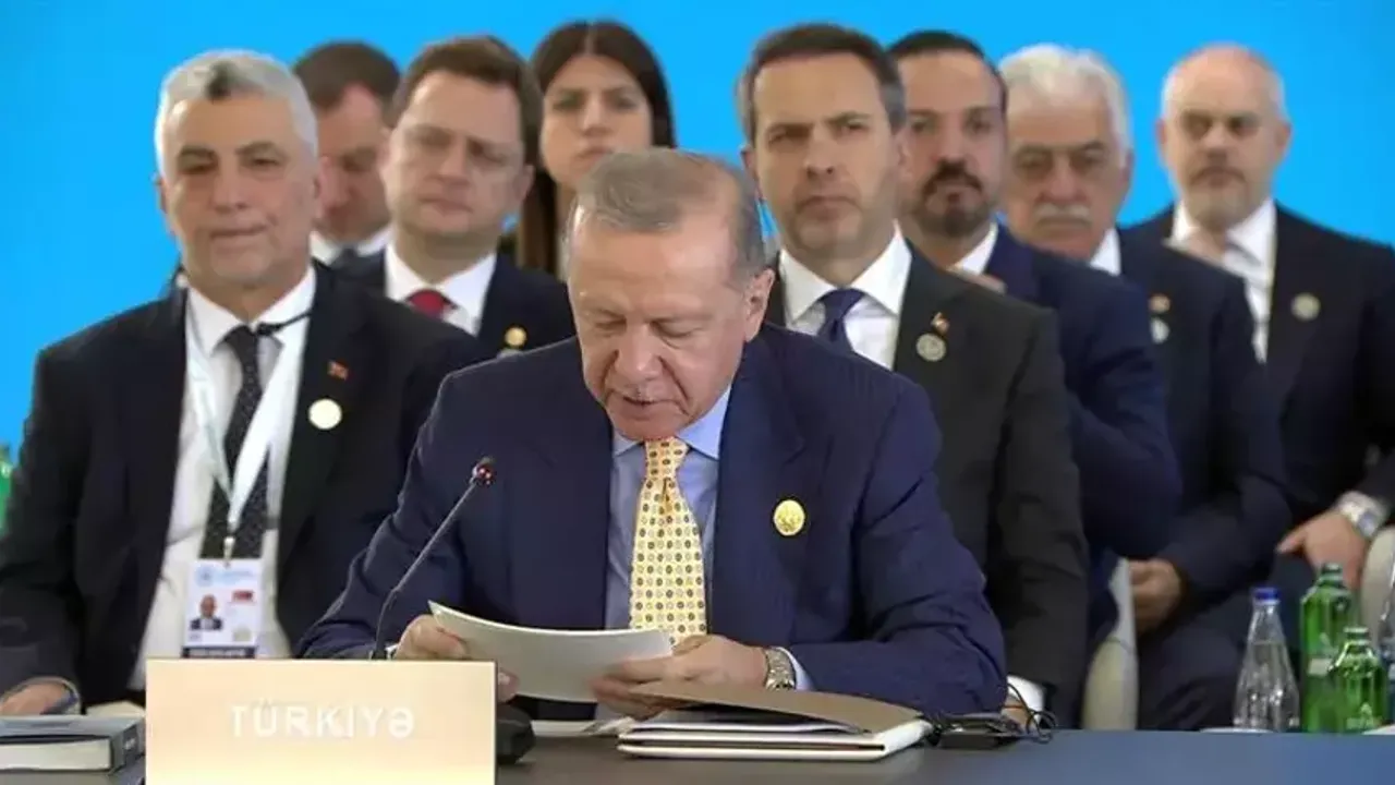 Cumhurbaşkanı Erdoğan, Azerbaycan'ın Gebele kentinde gerçekleştirilen Türk Devletleri Teşkilatı 12. Zirvesi'ndeki konuşmasında, İsrail hükümetinin Lübnan ve Suriye'yle başlayan, Yemen ve İran'la devam eden ve son olarak Katar'ı hedef alan saldırılarının bölgenin istikrarına en büyük tehdidin, bu ülkenin mevcut yönetiminden kaynaklandığını gösterdiğini aktardı.