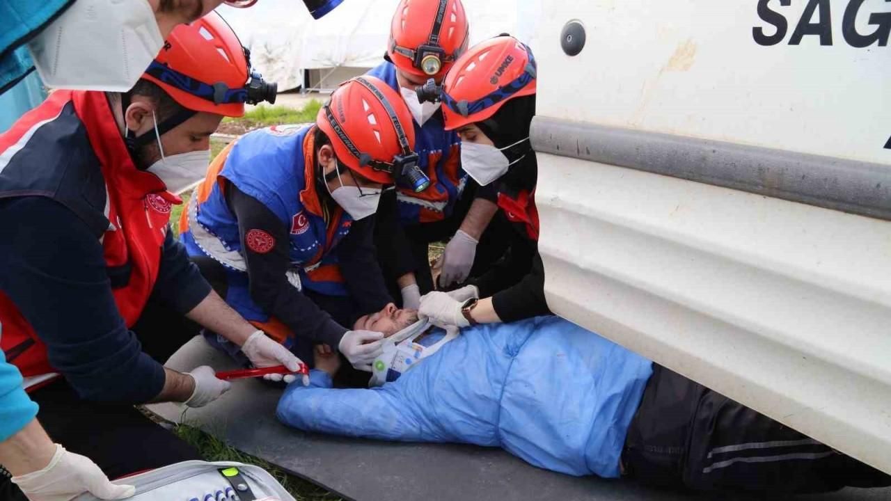 3 gün teorik, 2 gün pratik olmak üzere toplam 5 gün süren eğitim sonunda 35 kursiyer, 17 eğitmen ve 7 mihmandarın katılımıyla yapılan tatbikatta senaryo gereği Yenişehir ilçesinde bulunan Menekşe Apartmanı’nda meydana gelen patlama sonucu enkaz altında kalan ve yaralanan vatandaşlar olduğu ihbarı üzerine ekipler harekete geçti. Patlamada yaralanan vatandaşlar, yapılan ilk müdahalenin ardından enkazdan çıkarılarak ambulanslarla hastaneye sevk edildi.