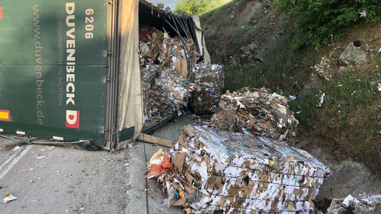 Tır ve atık kağıt balyaları çekiciyle olay yerinden kaldırıldı. Kaza nedeniyle bir süre kapalı olan trafik, tırın kaza yerinden çekilmesinin ardından normale döndü.