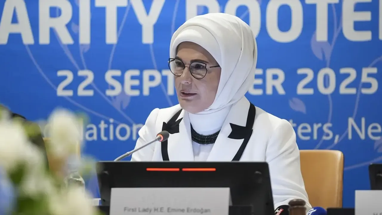 Bir otelde gerçekleştirilen resepsiyona gelen Emine Erdoğan, burada bazı lider eşleriyle sohbet etti.