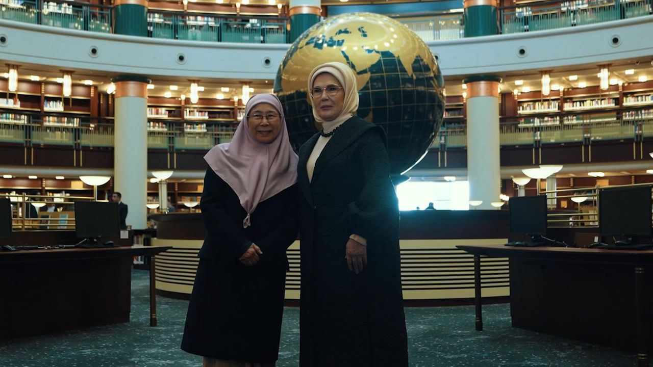 Cumhurbaşkanı Recep Tayyip Erdoğan'ın eşi Emine Erdoğan, Malezya Başbakanı Enver İbrahim'in eşi Dr. Wan Azizah İsmail ile Cumhurbaşkanlığı Millet Kütüphanesi ve Yaşayan Miras Okulunu ziyaretlerine ilişkin video paylaştı.