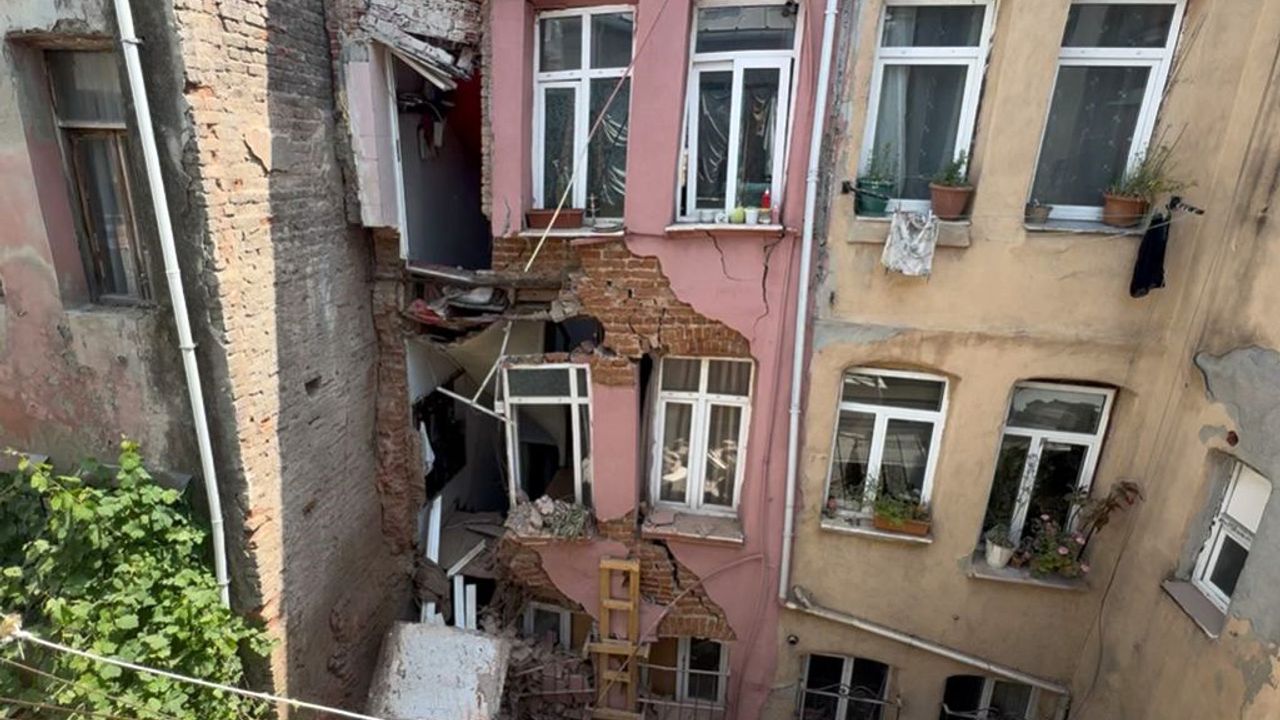 Fatih'te bir binanın arka cephesinde oluşan kısmi çökme nedeniyle bitişikteki bazı binalarda hasar oluştu.