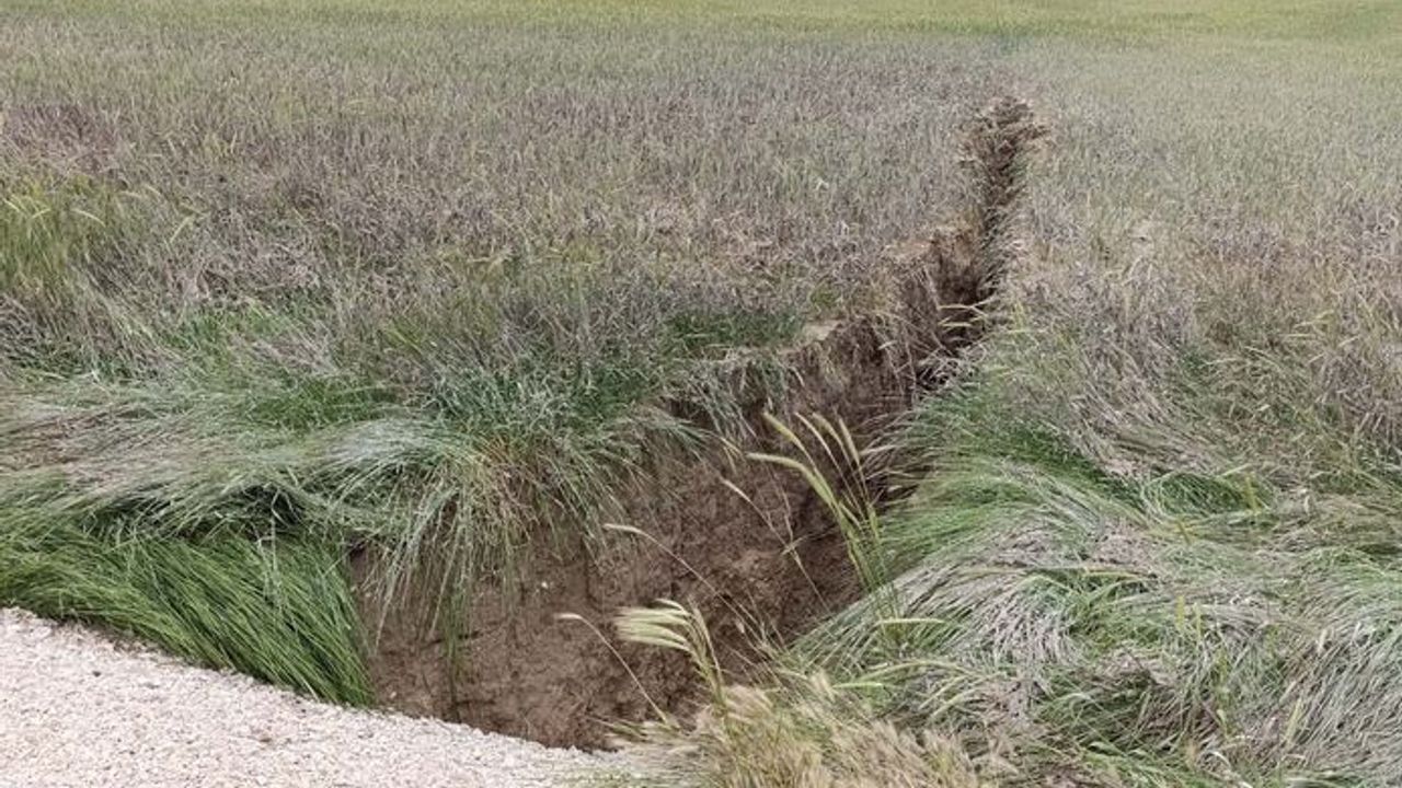 Yoğun yağış nedeniyle arazide çatlaklar oluştuğunu belirten Karagöz, şunları kaydetti: