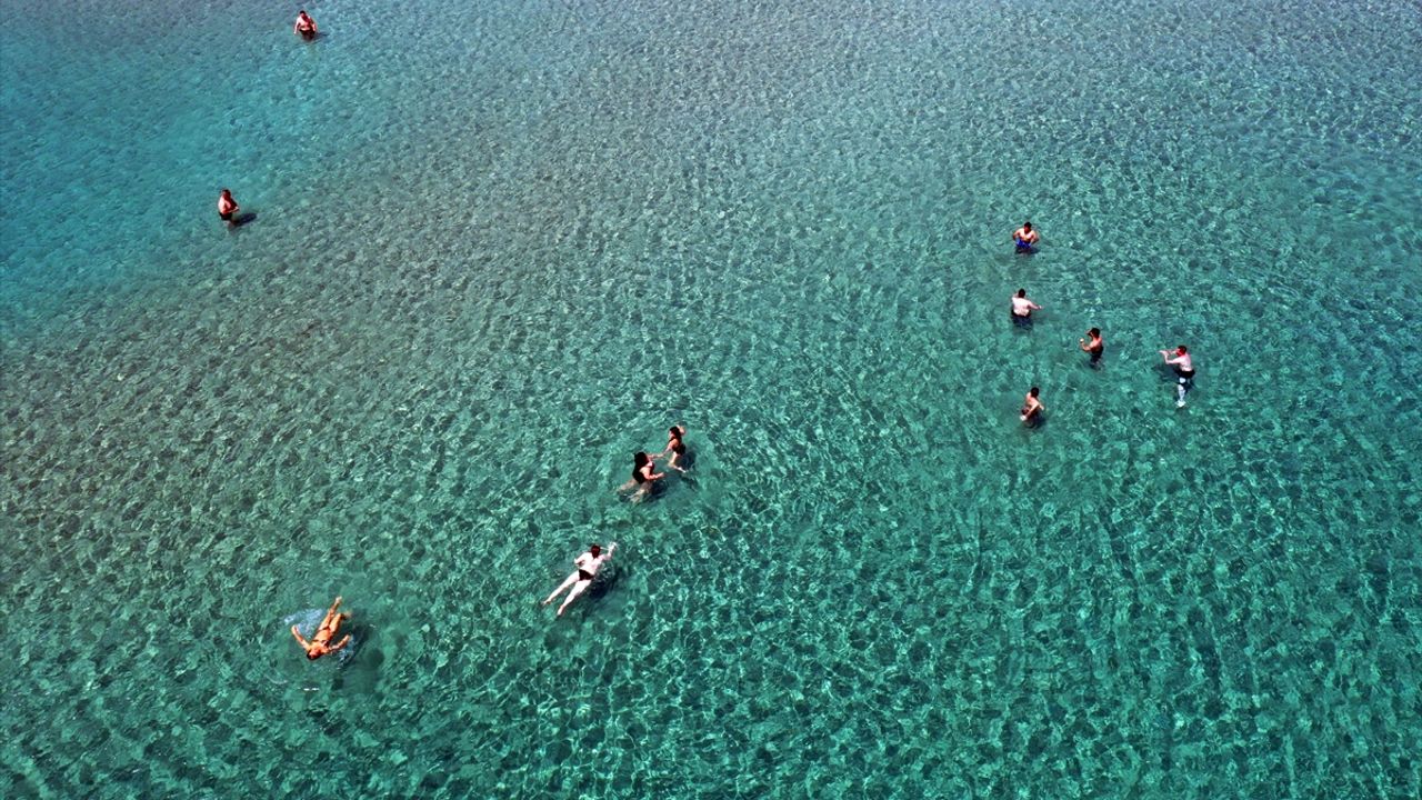 Hava sıcaklığının 25 dereceye ulaştığı ilçede bazı turistler yüzmeyi tercih ederken bazıları da tekne turlarıyla denizin keyfini çıkardı.