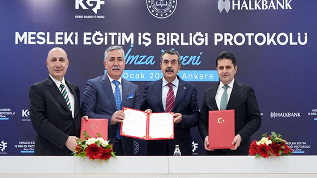 Mesleki ve teknik ortaöğretim kurumlarından mezun olan 29 yaş ve altı gençlerin girişimcilik yoluyla kendi işlerini kurmaları ve mezuniyet alanlarında istihdam edilmelerini teşvik etmeye yönelik işbirliği protokolü, Milli Eğitim Bakanlığı (MEB), Kredi Garanti Fonu (KGF) ve Halkbank arasında imzalandı.