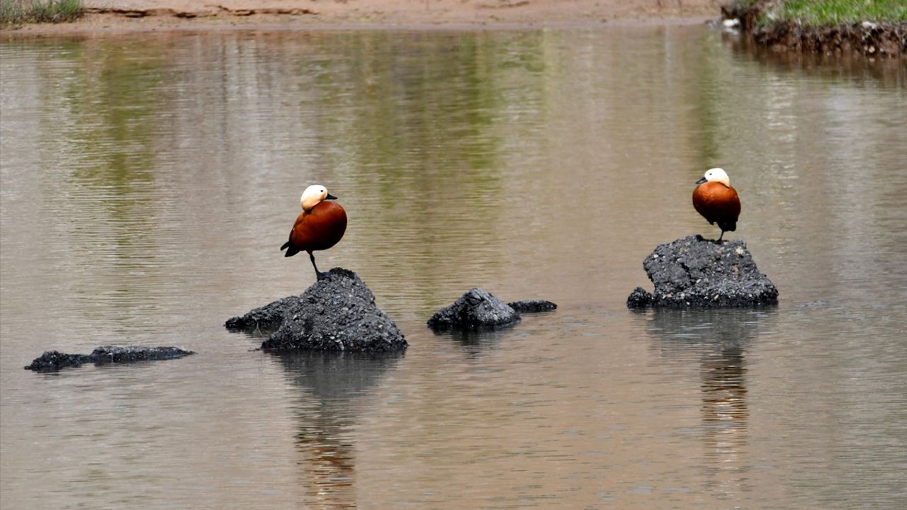 Hançerli düzündeki göletler de angutlarla şenlendi. Bir yanda karlı dağlar, diğer yanda çiçeklerle süslenen doğa, fotoğrafçıların ilgisini çekiyor.