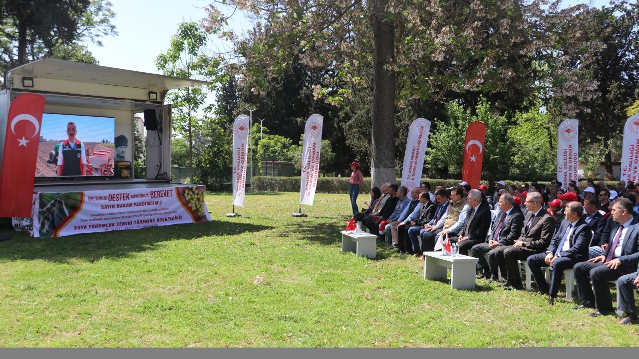 Konuşmaların ardından Polat, iki üreticiye soya tohumu verdi.